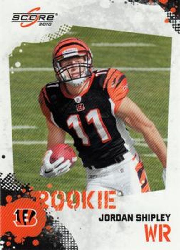The Jordan Shipley 2010 Score #364 Glossy Rookie card is 1 of 17 Jordan Shipley's card variations in the 2010 Score set being tracked by Sports Card Investor, including Base, Scorecard /499, Gold Zone /299, Red Zone /100, and Artist's Proof /32.