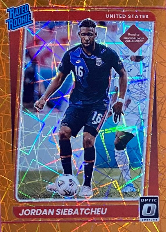 The Jordan Siebatcheu 2021 Donruss #194 Optic - Orange Velocity /49 Rookie card in Raw condition has not changed in price in the last 30 days and was last sold for $31.00 .