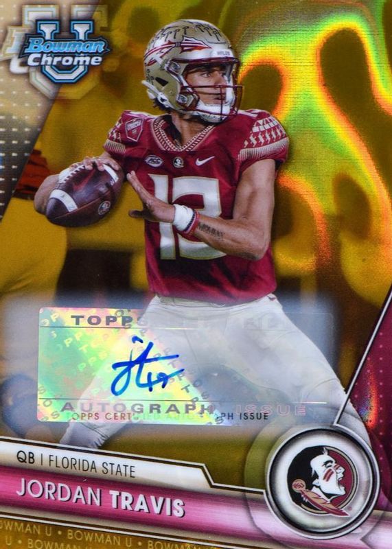 2023 Bowman Chrome U Jordan Travis Auto /50 Gold Lava SP #66 Florida State
