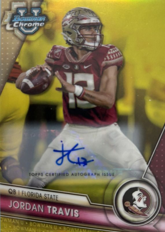 2023 Bowman University Chrome JORDAN TRAVIS Auto Yellow /75 Florida State #66