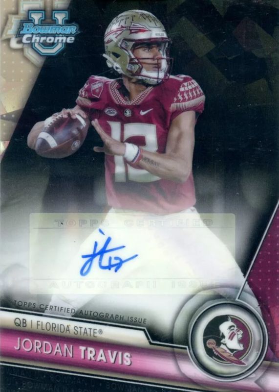 Jordan Travis 2023 Bowman Chrome University Sapphire Edition #PA-JTR Prospect Auto - Black /10 RAW Price Guide