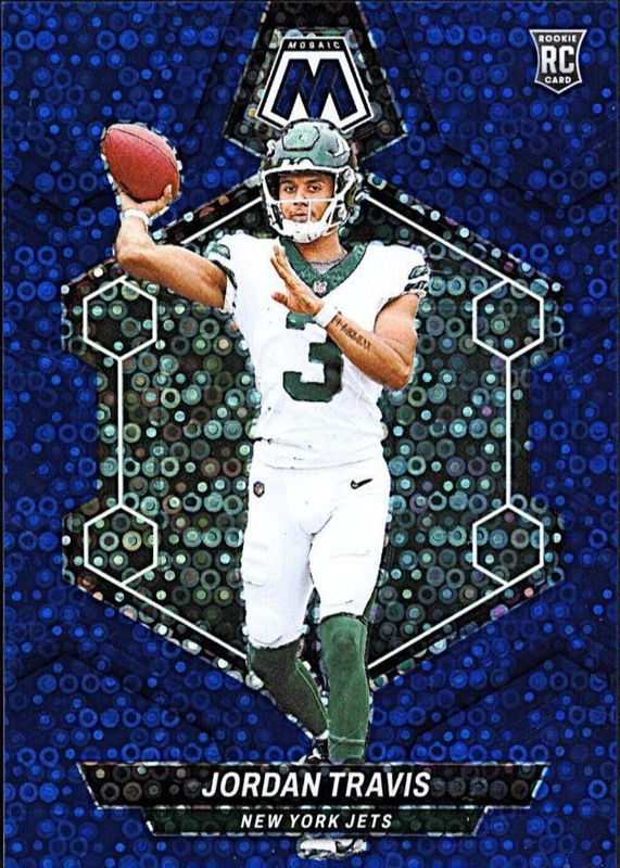 2024 Panini Mosaic Mosaic No Huddle Blue #395 Jordan Travis RC ROOKIE 72/75 JETS