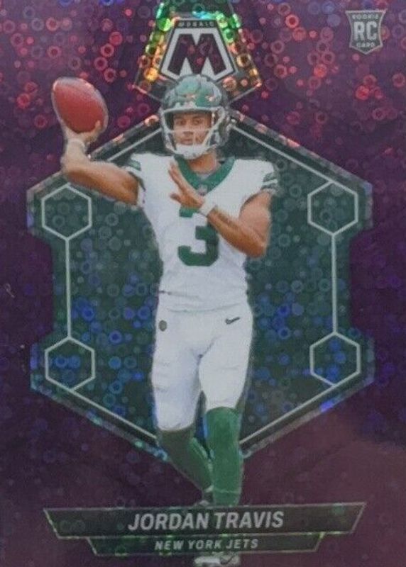 2024 Panini Mosaic Jordan Travis #395 RC Rookie No Huddle Purple /50