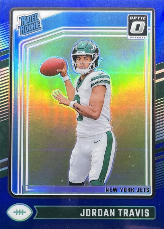 2024 DONRUSS OPTIC JORDAN TRAVIS BLUE PRIZM ROOKIE /199 #260 JETS!!!