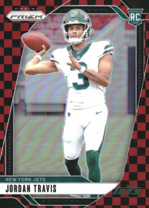 Jordan Travis 2024 Panini Prizm Red & Black Checker Prizm RC Rookie 359 Jets