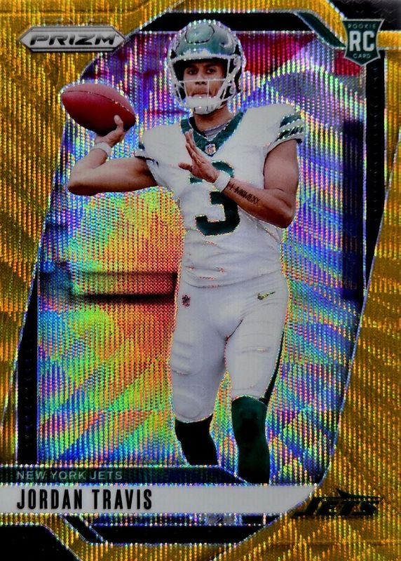 The Jordan Travis 2024 Prizm #359 Gold Wave /10 Rookie card in Raw condition has not changed in price in the last 30 days and was last sold for $37.00 .