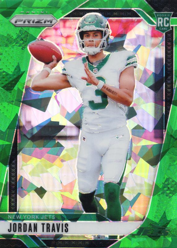 2024 Panini Prizm Football JORDAN TRAVIS Green Cracked Ice RC #359