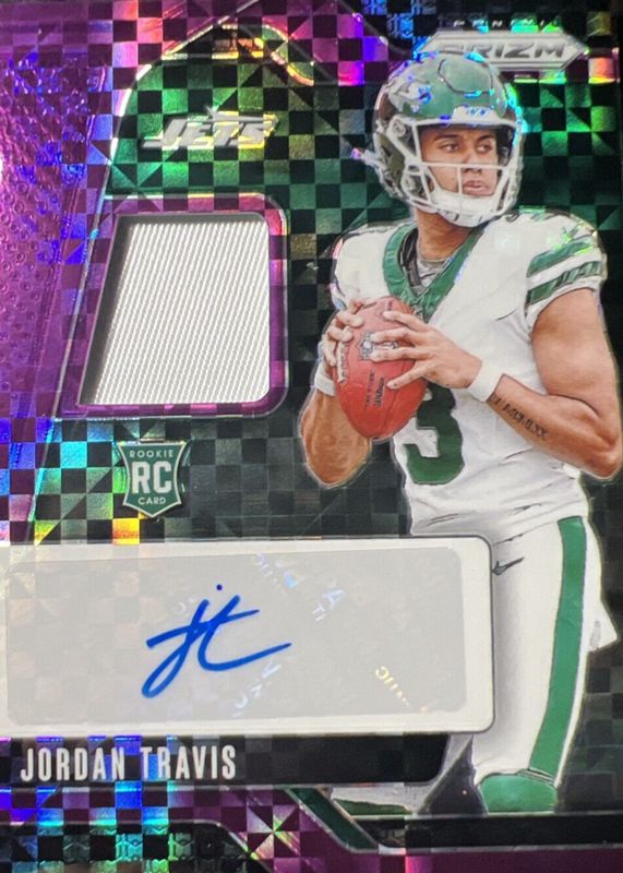 JORDAN TRAVIS 2024 PANINI PRIZM ROOKIE JERSEY PATCH AUTO PURPLE POWER RC 30/49