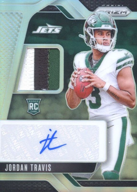 Jordan Travis (RC) 2024 Panini Prizm Rookie Patch Auto Silver RPA-JTS /99 Jets