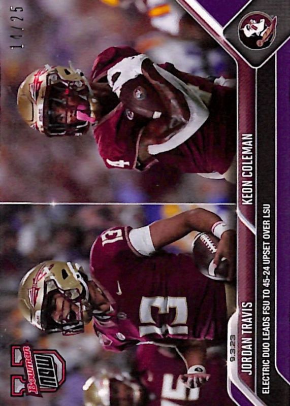 Auctions Ending Soon for Jordan Travis / Keon Coleman 2023 Bowman U Now #1 Purple /25 PSA 10