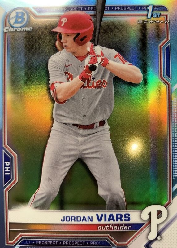 2021 Bowman Draft Chrome Sky Blue Refractor Jordan Viars Philadelphia Phillies