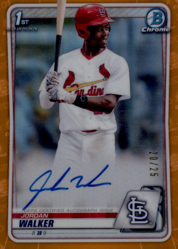 Jordan Walker 2020 Bowman Draft #CDA-JW Chrome DP Auto - Orange Refractor /25 (1st) BGS 10 PRISTINE Price Guide