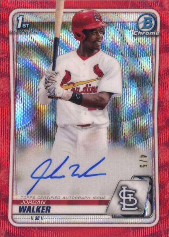 Jordan Walker 2020 Bowman Draft #CDA-JW Chrome DP Auto - Red Wave Refractor /5 (1st) RAW Price Guide