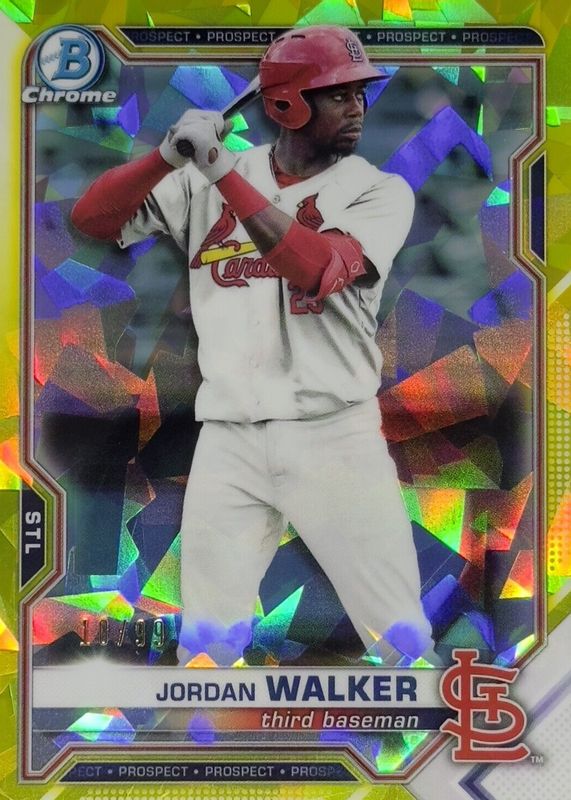 2021 Bowman Draft Chrome SAPPHIRE JORDAN WALKER Yellow REFRACTOR 10/99 Cardinals