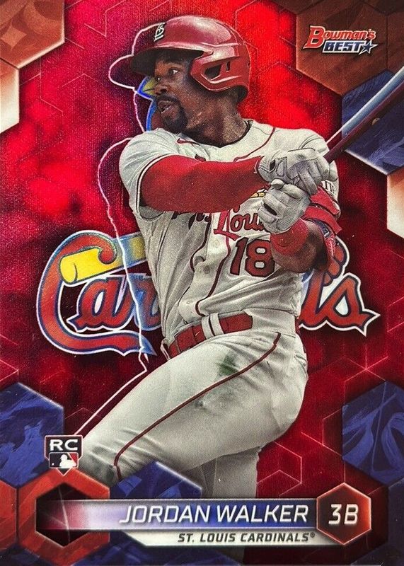 The Jordan Walker 2023 Bowman's Best #65 Red Refractor /10 Rookie card in Raw condition has not changed in price in the last 30 days and was last sold for $100.00 .