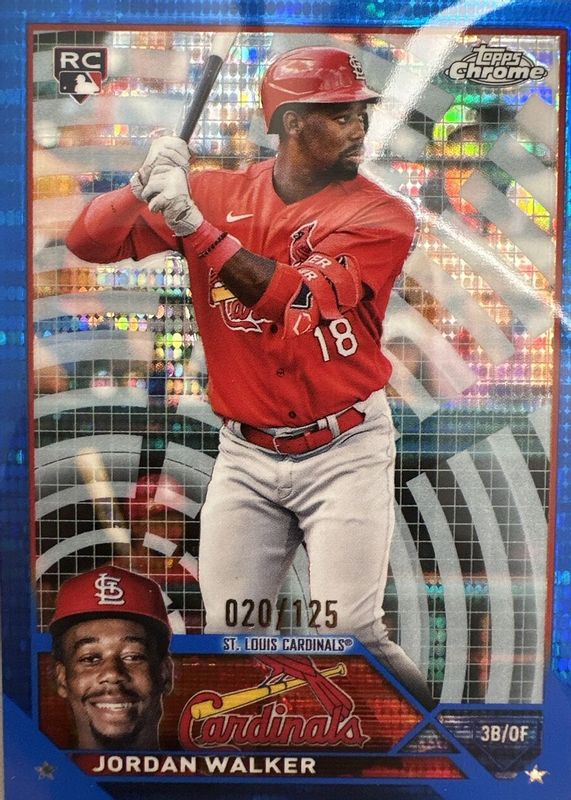 2023 Topps Chrome Jordan Walker Sonar Blue Refractor /125 RC #209 Cardinals