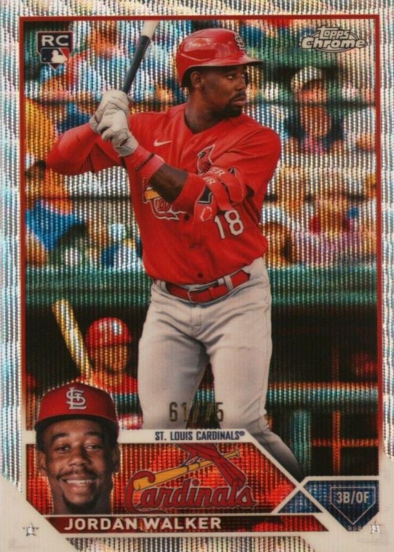 This card is 1 of 46 Jordan Walker's card variations in the 2023 Topps Chrome set being tracked by Sports Card Investor, including Base, Negative Refractor, Pink Refractor, Prism Refractor, and Refractor.