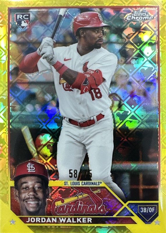 2023 Topps Chrome Yellow Logofractor #209 Jordan Walker Cardinals RC Rookie /75