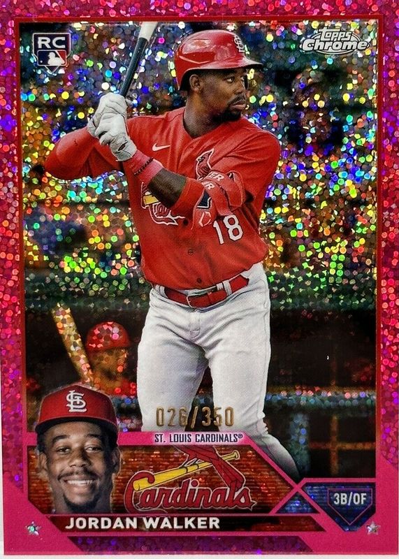 The Jordan Walker 2023 Topps Chrome #209 Magenta Speckle Refractor /350 Rookie card in Raw condition has not changed in price in the last 30 days and was last sold for $17.99 .