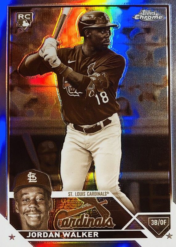 The Jordan Walker 2023 Topps Chrome #209 Sepia Refractor Rookie card in Raw condition has moved up $4.00 (+400%) in the last 30 days and was last sold for $5.00 .