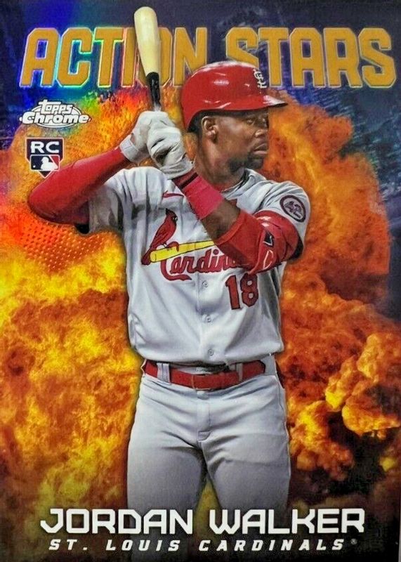 The Jordan Walker 2023 Topps Chrome Update #ASC-12 Action Stars - Gold Refractor /50 Rookie card in Raw condition has not changed in price in the last 30 days and was last sold for $5.99 .