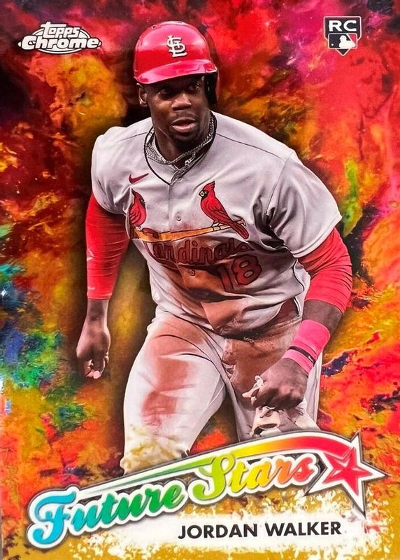The Jordan Walker 2023 Topps Chrome Update #FSU-7 Future Stars - Gold Refractor /50 Rookie card in Raw condition has not changed in price in the last 30 days and was last sold for $20.24 .