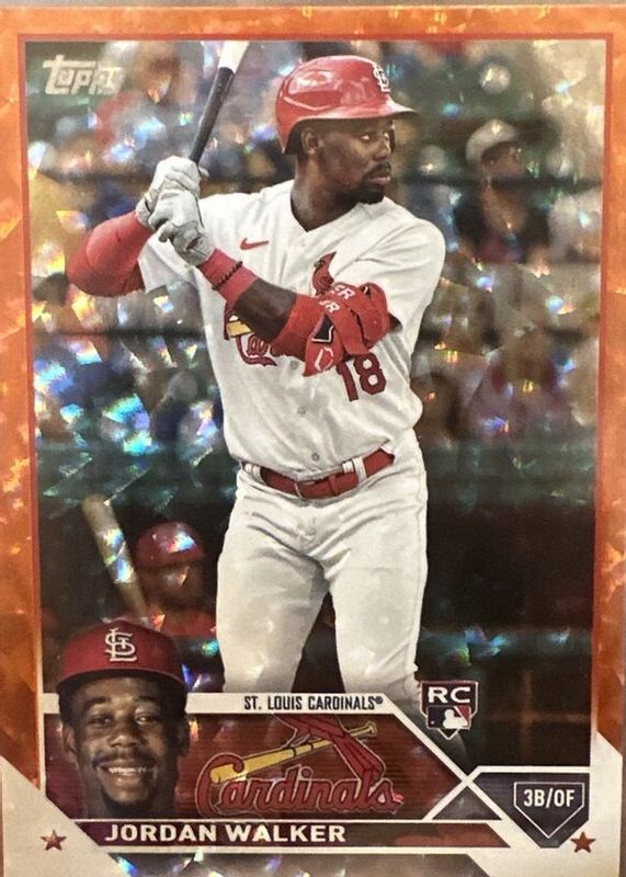 The Jordan Walker 2023 Topps #344 Orange Foil /299 Rookie card in Raw condition has moved up $8.00 (+114%) in the last 30 days and was last sold for $15.00 .
