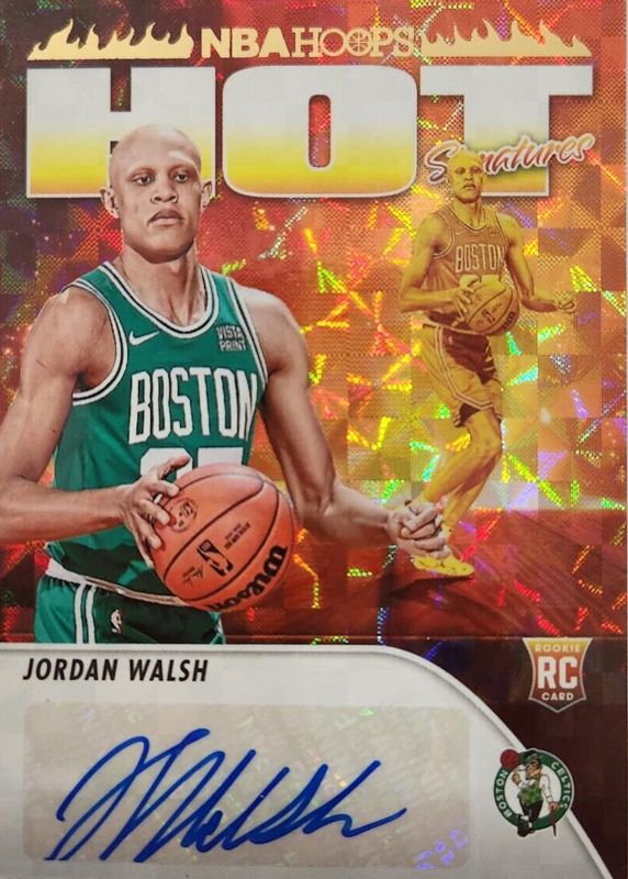 The Jordan Walsh 2023 Hoops #HSR-JW Hot Signatures Rookies - Hyper Gold card in Raw condition has not changed in price in the last 30 days and was last sold for $13.00 .