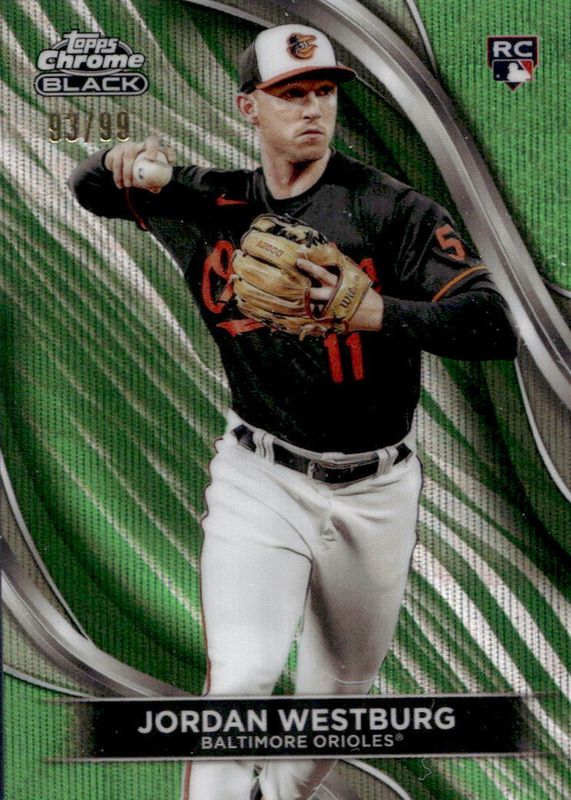 This card is 1 of 14 Jordan Westburg's card variations in the 2024 Topps Chrome Black set being tracked by Sports Card Investor, including Base, Refractor /199, Purple Mini-Diamond Refractor /150, Green Refractor /99, and Blue Lava Refractor /75.