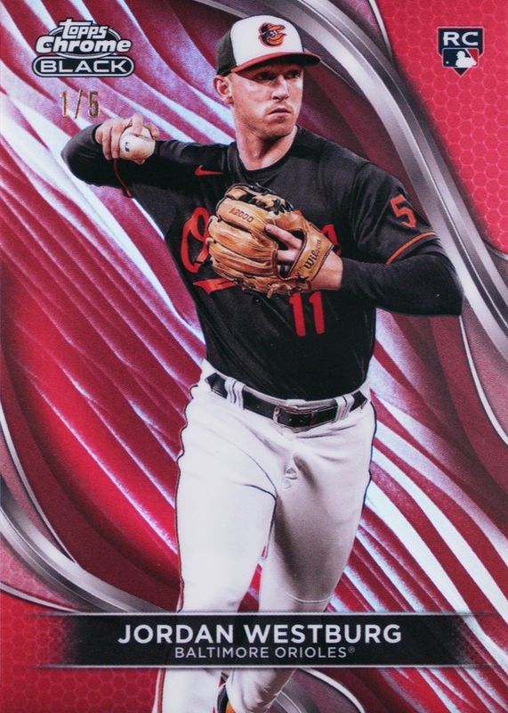 This card is 1 of 14 Jordan Westburg's card variations in the 2024 Topps Chrome Black set being tracked by Sports Card Investor, including Base, Refractor /199, Purple Mini-Diamond Refractor /150, Green Refractor /99, and Green Wave Refractor /99.