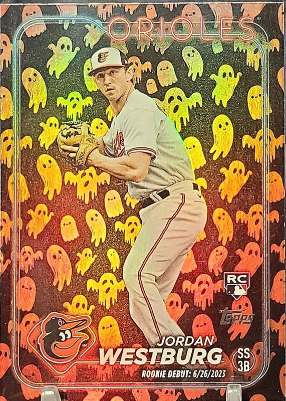 This card is 1 of 41 Jordan Westburg's card variations in the 2024 Topps Update set being tracked by Sports Card Investor, including Rookie Debut, Rookie Debut - Aqua, Rookie Debut - Gold Rainbow Foil, Rookie Debut - Jack O' Lantern Foil, and Rookie Debut - Mummy Foil.