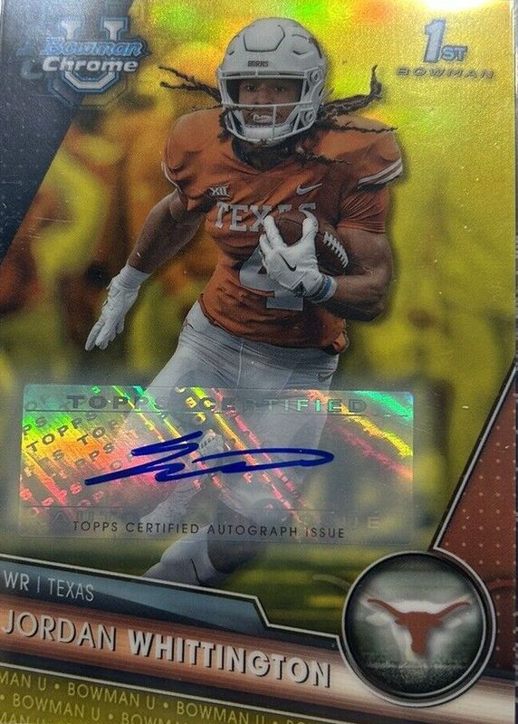 2023 Bowman University Chrome Jordan Whittington 1st Yellow Refractor Auto /75