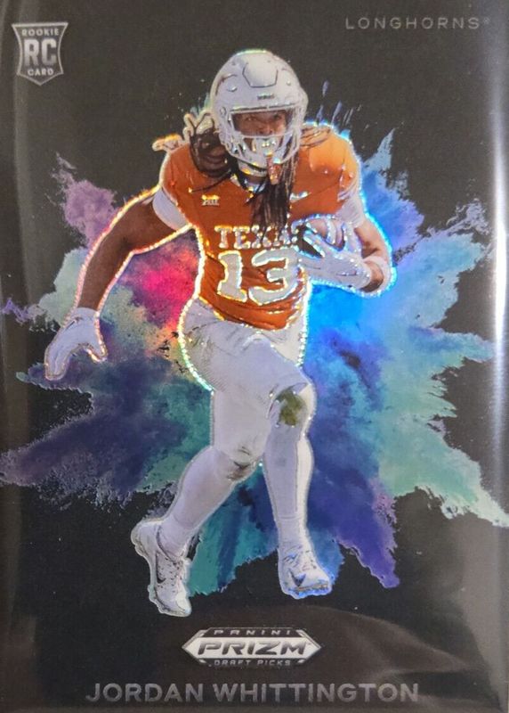 The Jordan Whittington 2024 Prizm Draft Picks #CB-22 Black Color Blast /(SSP) Rookie card in Raw condition has moved up $5.00 (+9.1%) in the last 30 days and was last sold for $60.00 .