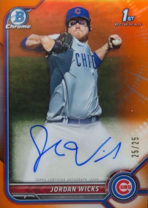 Jordan Wicks 2022 Bowman #CPA-JW Chrome Prospect Auto - Orange Refractor /25 (1st) RAW Price Guide