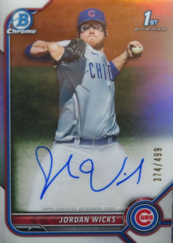 2022 Bowman Chrome 1st Refractor Jordan Wicks Auto /499 Cubs #CPA-JW C07