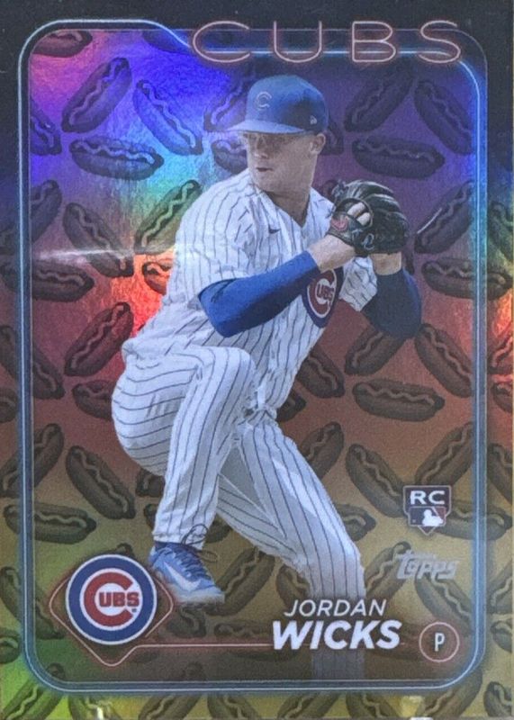 2024 Topps Series 2 #613 Jordan Wicks RC Cubs Rookie Holiday HOT DOGS Refractor