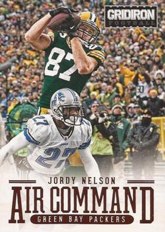 The Jordy Nelson 2012 Gridiron #11 Air Command card is 1 of 16 Jordy Nelson's card variations in the 2012 Gridiron set being tracked by Sports Card Investor, including Base /199, Silver O's /250, Silver X's /250, Gold O's /100, and Gold X's /100.