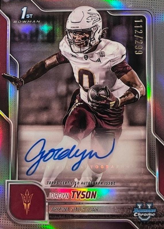 Jordyn Tyson 2025 1st Bowman Chrome U Refractor Auto /299 ASU Sun Devils