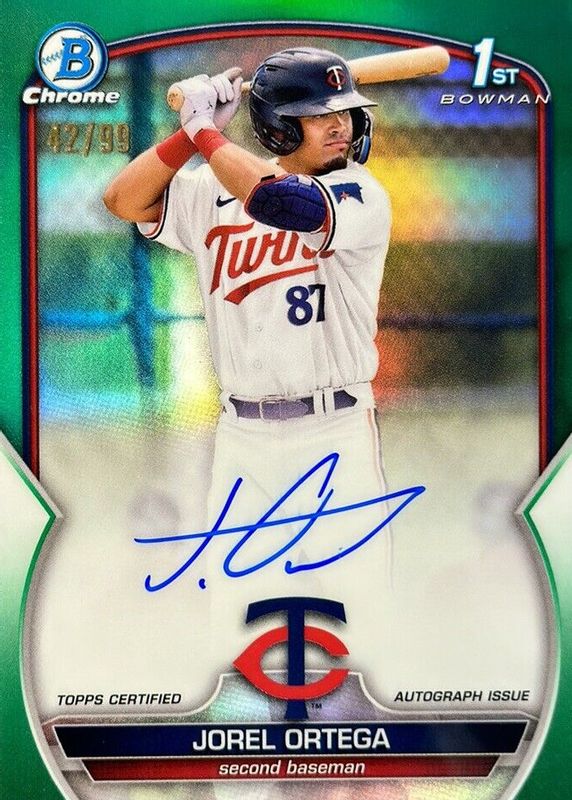 2023 Bowman Chrome JOREL ORTEGA 1st GREEN REFRACTOR AUTO /99 SP TWINS FIRST