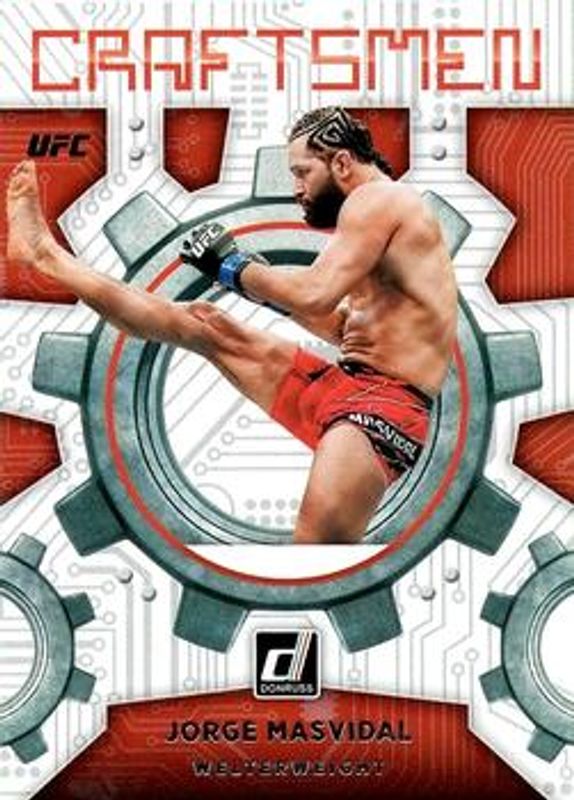 The Jorge Masvidal 2022 Donruss UFC #11 Craftsmen card is 1 of 40 Jorge Masvidal's card variations in the 2022 Donruss UFC set being tracked by Sports Card Investor, including Base, Green Flood, Holo Orange Laser, Holo Pink Laser, and Press Proof Purple.