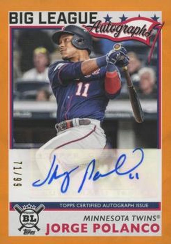 Jorge Polanco 2020 Topps Big League #BLA-JP Autographs - Orange /99 RAW