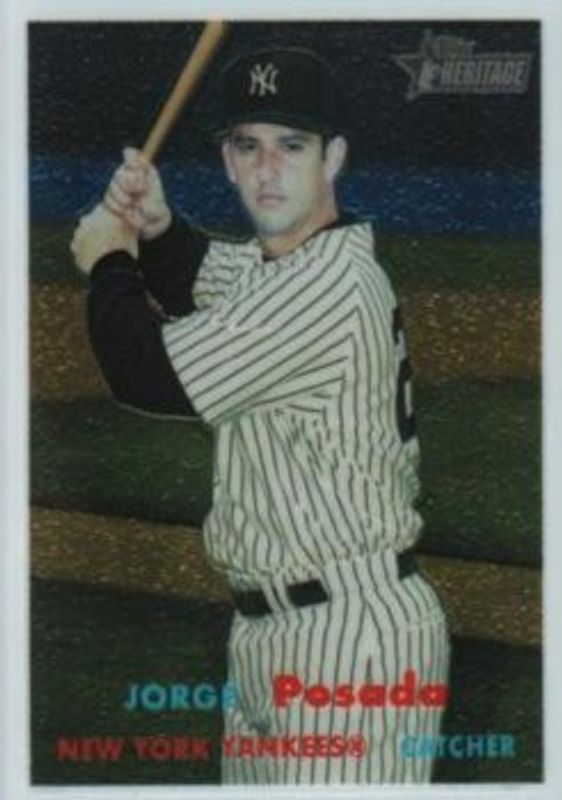 The Jorge Posada 2006 Topps Heritage #10 Chrome /1957 card is 1 of 4 Jorge Posada's card variations in the 2006 Topps Heritage set being tracked by Sports Card Investor, including Base, Chrome Refractor /557, and Chrome Black Refractor /57.