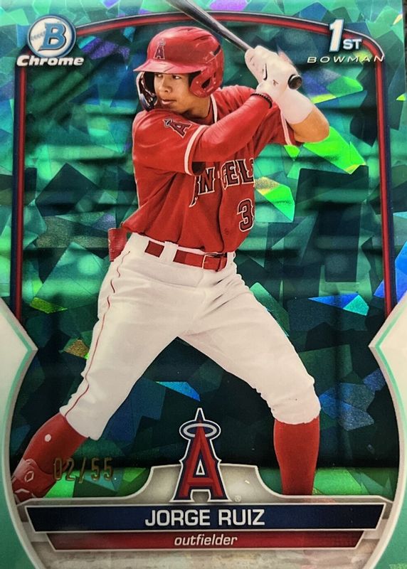 2023 Bowman Sapphire- Jorge Ruiz 1st /55 Aqua- Los Angeles Angels