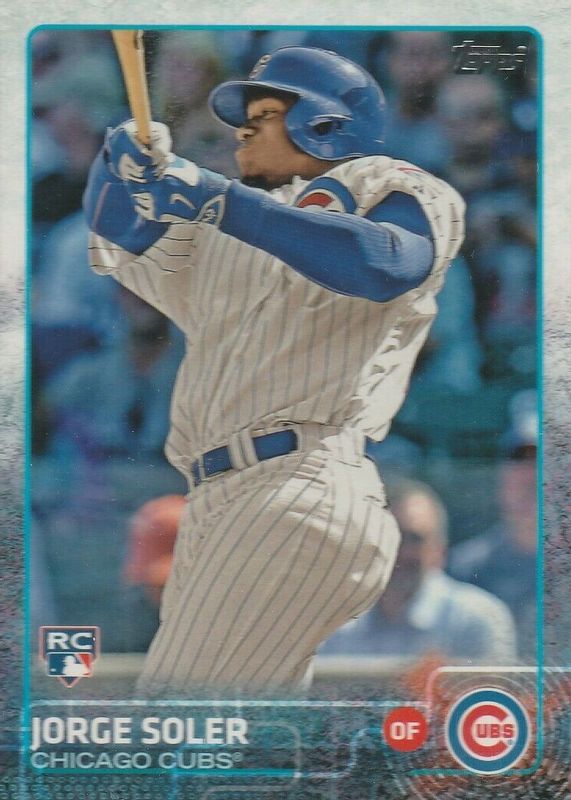 This card is 1 of 3 Jorge Soler's card variations in the 2015 Topps set being tracked by Sports Card Investor, including Base (Swinging Up), and Photo Variation (Bat Not Visible).