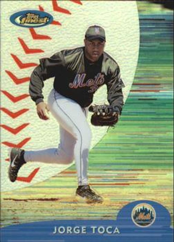 The Jorge Toca 2000 Topps Finest #242 Refractor /1000 Rookie card is 1 of 3 Jorge Toca's card variations in the 2000 Topps Finest set being tracked by Sports Card Investor, including Base, and Gold Refractor /100.