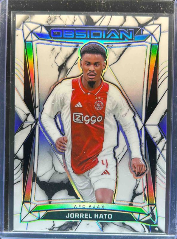 The Jorrel Hato 2024 Obsidian #33 Electric Etch Marble Flood /8 card is 1 of 17 Jorrel Hato's card variations in the 2024 Obsidian set being tracked by Sports Card Investor, including Base /145, Electric Etch Red Pulsar /44, Electric Etch Orange /40, Electric Etch Purple Flood /30, and Electric Etch Imperial Jade /26.
