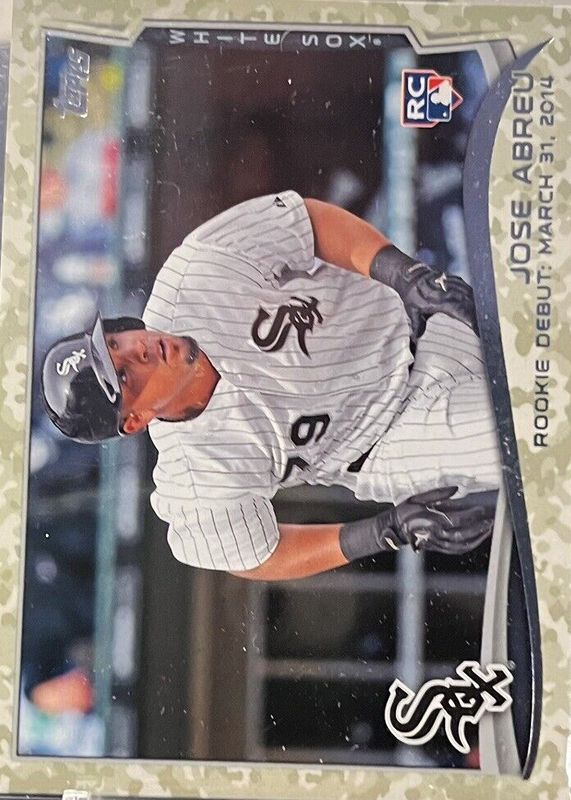 The Jose Abreu 2014 Topps Update #US-325 Rookie Debut - Camo /99 card in Raw condition has not changed in price in the last 30 days and was last sold for $6.50 .