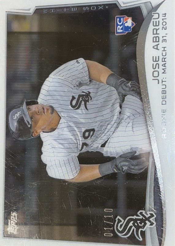 The Jose Abreu 2014 Topps Update #US-325 Rookie Debut - Clear /10 card in Raw condition has not changed in price in the last 30 days and was last sold for $70.00 .
