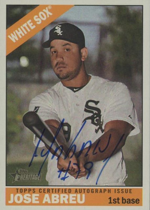 This card is 1 of 2 Jose Abreu's card variations in the 2015 Topps Heritage High Number set being tracked by Sports Card Investor, including Real One Autographs - Red Ink /66.