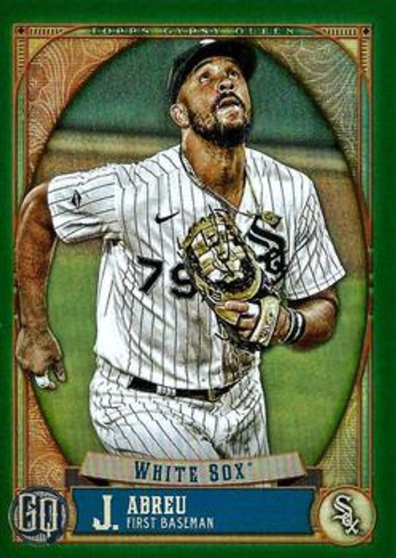 The Jose Abreu 2021 Topps Gypsy Queen #96 Green card is 1 of 19 Jose Abreu's card variations in the 2021 Topps Gypsy Queen set being tracked by Sports Card Investor, including Base, Bazooka Back, Missing Nameplate, Team Script Font Swap, and Indigo /250.
